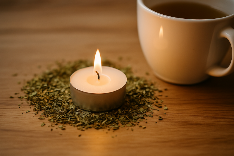 2. Streue eine Prise der Kräuter rund um das Teelicht