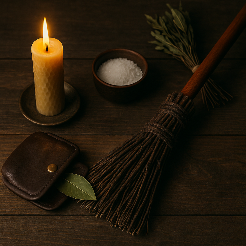 Bewahre den Besen an einem würdevollen Ort – z. B. am Eingang, bei deinem Altar oder an einer Schwelle.